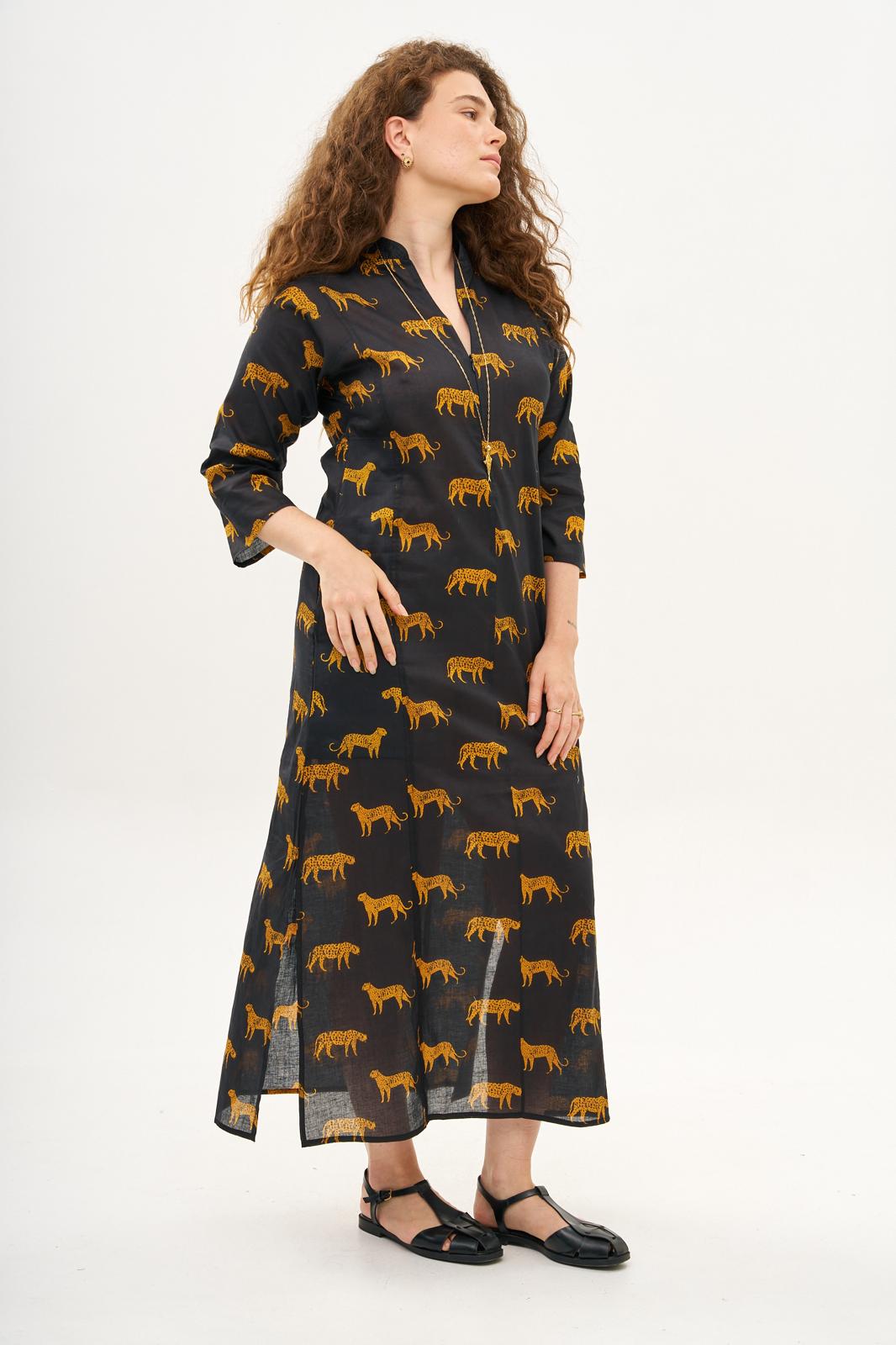 פירוט צבע: פרינט פרא, שמלה שחורה עם הדפס פראי.